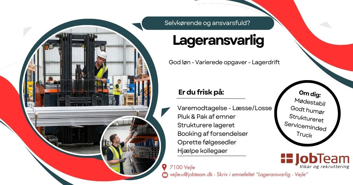 Ansøg: Send dit CV og ansøgning til vejle-u@jobteam.dk - Ved spørgsmål, ring gerne til Anders på 55667344