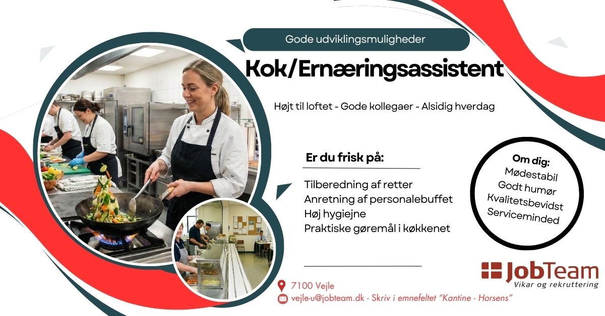 Vi søger en engageret kok, ernæringsassistent eller lignende til en stilling, hvor faglighed og arbejdsglæde går hånd i hånd. Vi lægger stor vægt på de sunde måltider, bæredygtighed og et moderne køkken med fokus på det grønne. Her får du muligheden for at forkæle en alsidig medarbejdergruppe og husets gæster med mad, der kan smages.