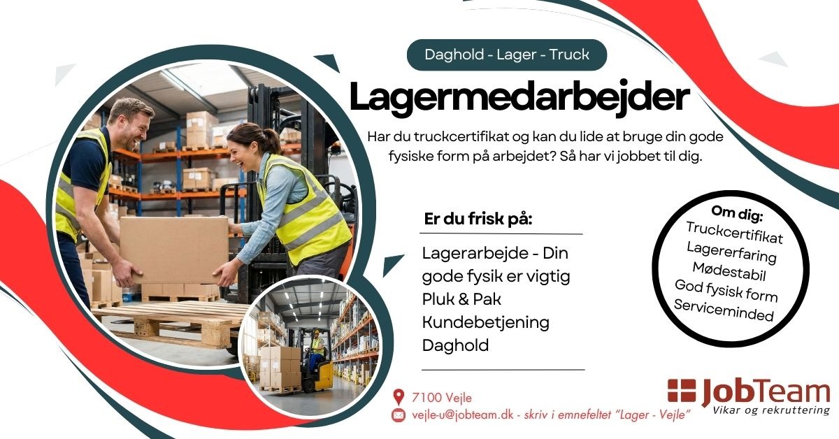 Vi leder efter en lagermedarbejder, der elsker at tage fat, og som trives i et mindre team, hvor vi løfter i flok og har det sjovt, mens vi arbejder. Hos os gør din indsats en reel forskel, og du kan se konkrete resultater af dit arbejde hver dag.