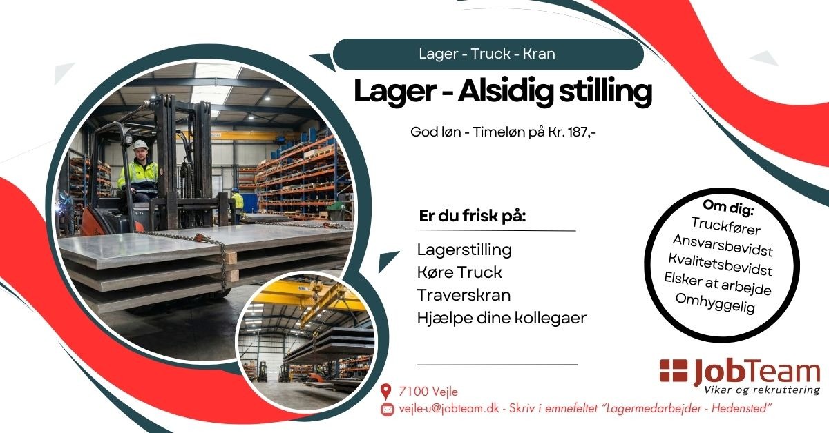 Lager - Timeløn Kr. 187,- - Kran + Truck