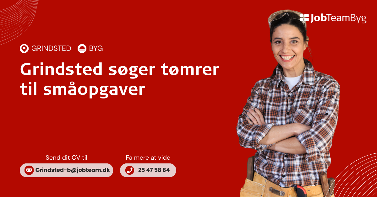 Er dette noget for dig? Send din ansøgning til Jonas Foldager på grindsted-b@jobteam.dk eller ring til os på 25475884 for at høre mere om stillingen.