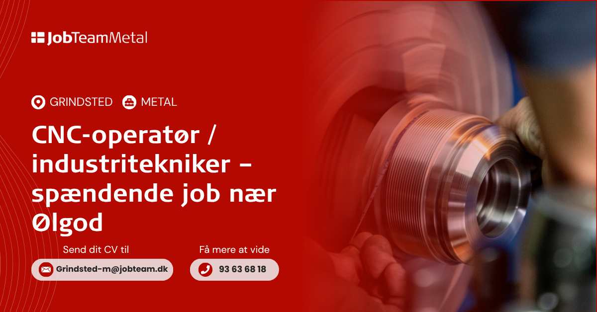 Så kontakt os på mail: grindsted-m@jobteam.dk, mærket "industritekniker eller CNC-operatør"
