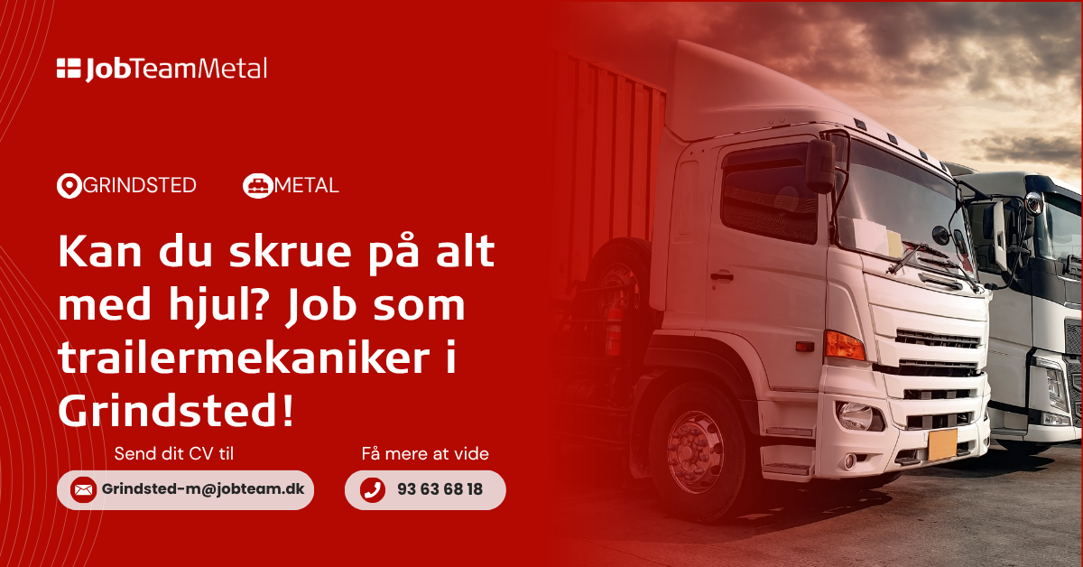 Vores kunde nær Grindsted søger en mekaniker. Du vil her blive udfordret i dagligdagen med reparationer, services og vedligehold. Dit arbejde vil primært være behandling af lastvogns trailere. Er du frisk på udfordringen, så tøv ikke med at kontakte os.