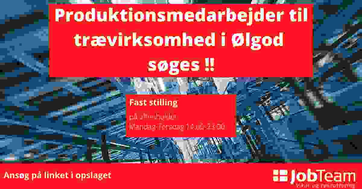 Dine primære opgaver vil være at Samle hylder og smide dem i en lim presser, passe maskine, tage træ fra.