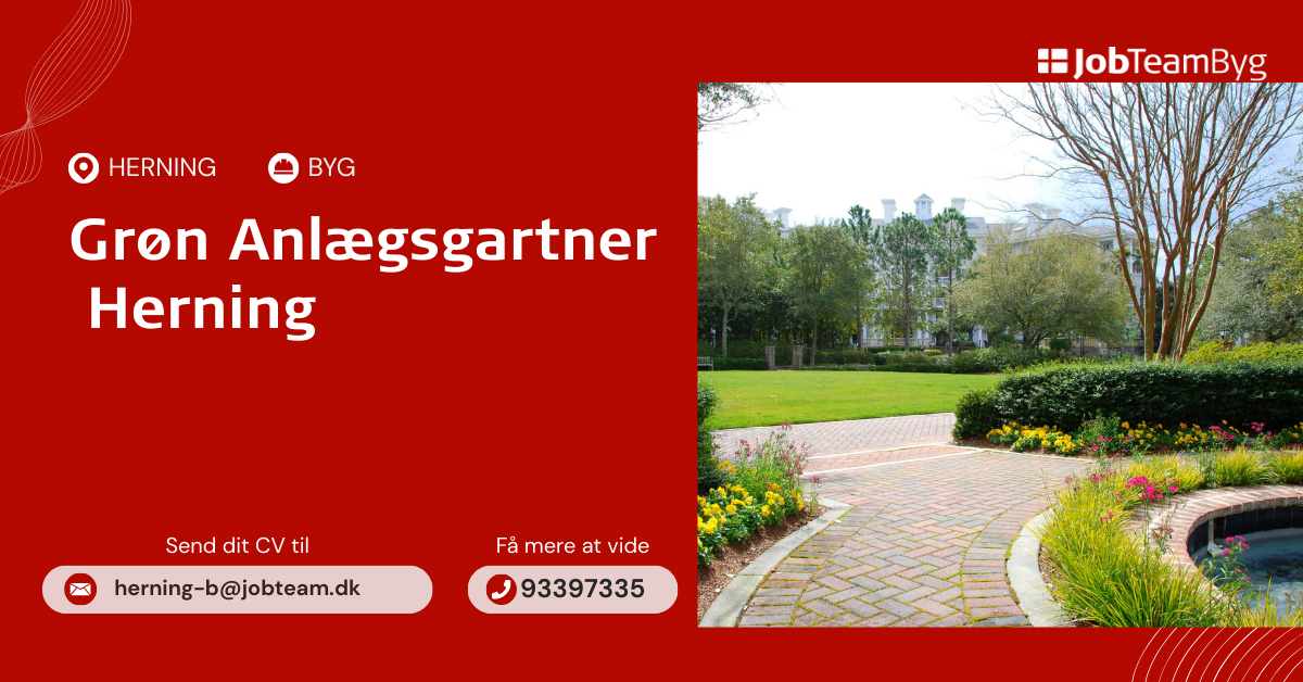 Brænder du for at arbejde med planter, grønne områder og udendørs projekter? Vi søger en engageret anlægsgartner, der har lyst til at skabe flotte og funktionelle udeområder i og omkring Herning. Som en del af vores team får du ansvar for både mindre og større opgaver, hvor kvalitet, æstetik og holdbare løsninger er i fokus. Hverdagen er varieret og giver mulighed for både selvstændigt arbejde og samarbejde med dygtige kolleger.
