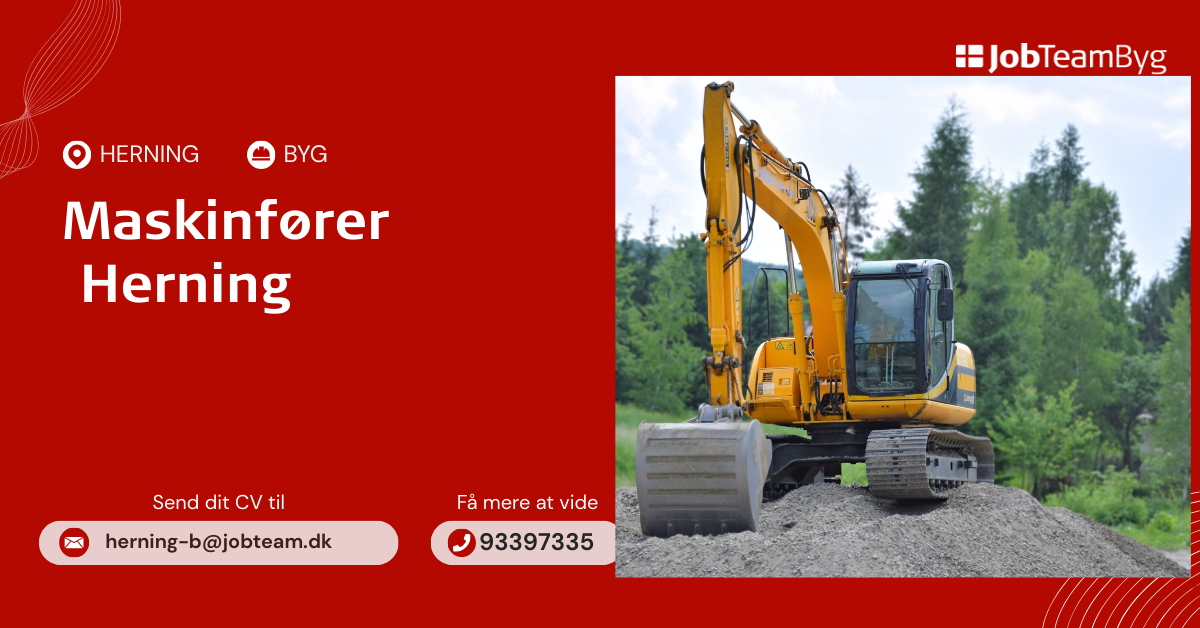 Vi søger en dygtig og erfaren maskinfører til spændende projekter nær Herning. Du vil blive en del af et professionelt team hos vores samarbejdspartner og arbejde med varierede opgaver inden for jord, anlæg og byggeprojekter. Stillingen byder på både selvstændigt ansvar og samarbejde med kollegaer på pladsen. Der lægges vægt på kvalitet, sikkerhed og en effektiv arbejdsproces. Der tilbydes gode og ordnede arbejdsforhold.
