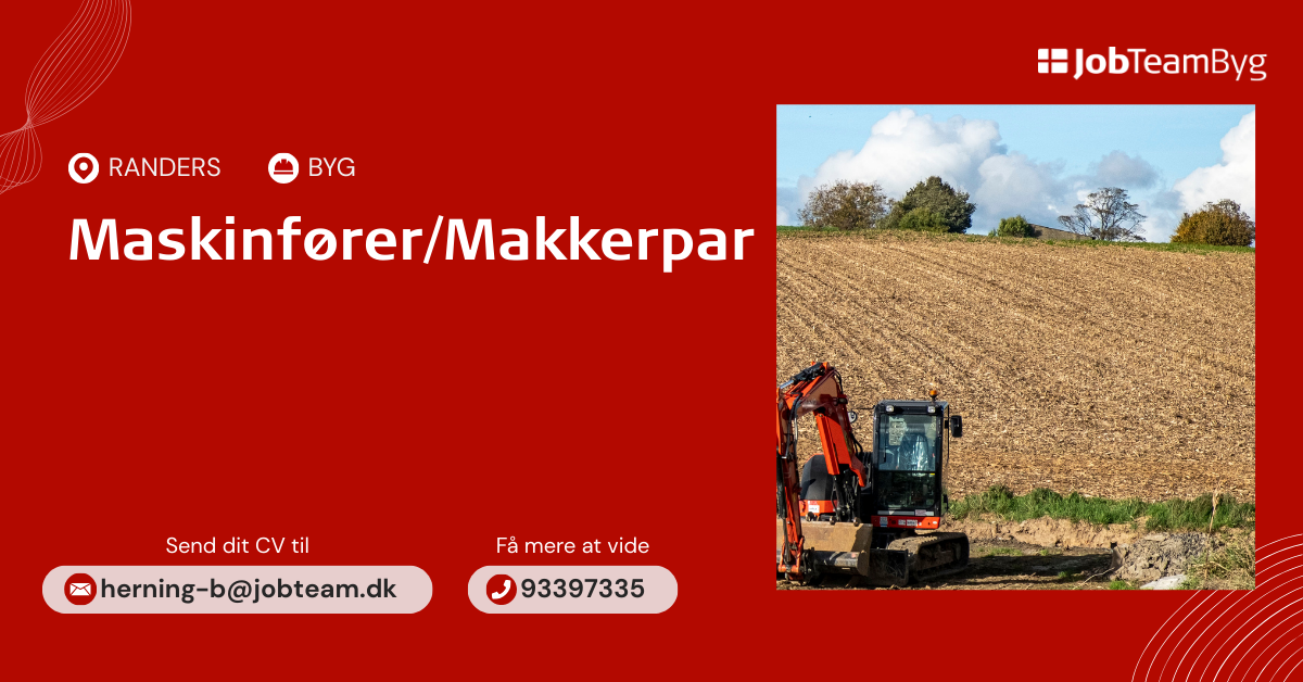 Hvis du har erfaring med kabelgravning og kørsel af 1,5-2,5 tons gravemaskiner, og er interesseret i at blive en del af vores team, så send din ansøgning og dit CV til Herning-b@jobteam.dk