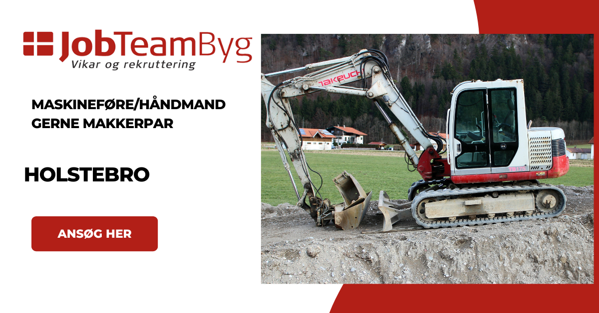Maskinfører/ Håndfolk søges til 1,5-2,5 t gravemaskiner omkring Holstebro
