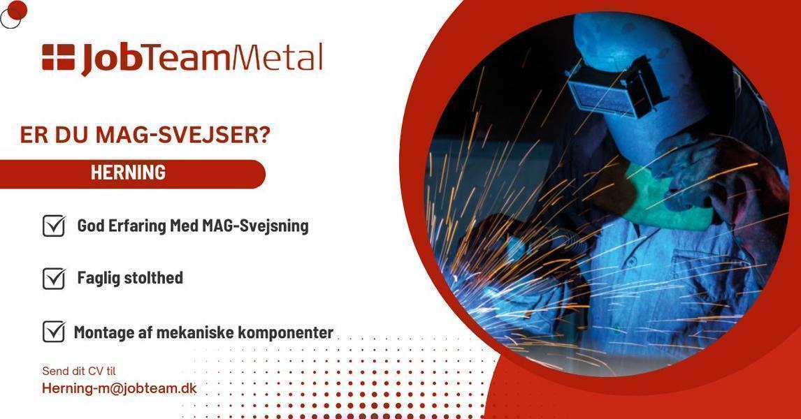 Vi beder dig kontakte os mail: herning-m@jobteam.dk, mærket med "MAG-Svejser"