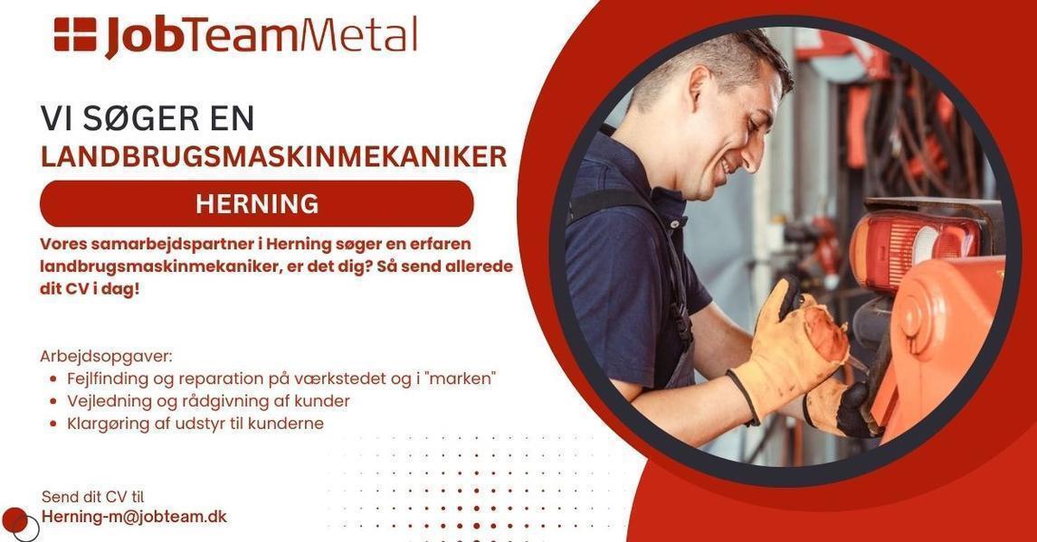 Kontakt os på mail: herning-m@jobteam.dk, mærket med "Landbrugsmaskinmekaniker".
