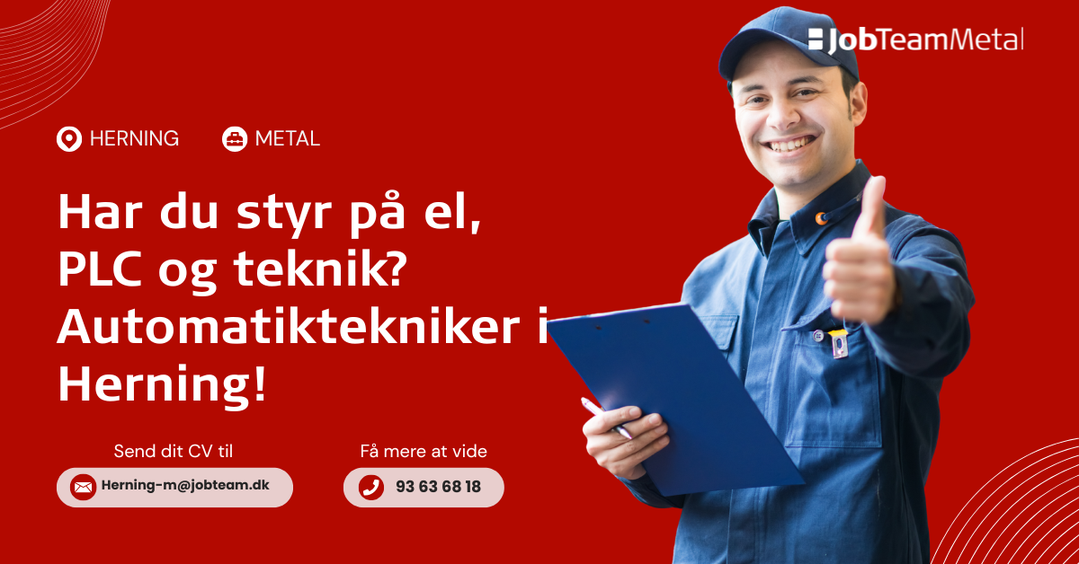 Kontakt os på mail: herning-m@jobteam.dk, mærket med "Automatiktekniker"
