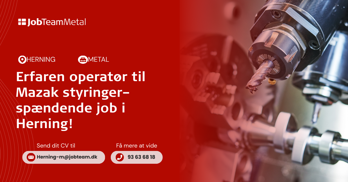For at komme i betragtning til stillingen sendes CV til Phillip Huynh på herning-m@jobteam.dk mærket "Industritekniker Mazak".
