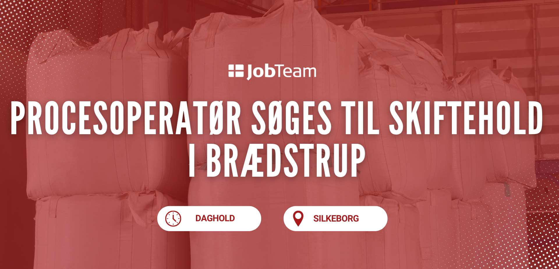Vi søger en engageret procesoperatør til betjening af vores anlæg med bigbags og småsække. Stillingen kræver god fysik, teknisk forståelse og lyst til at arbejde i et skiftende miljø. Du vil blive oplært på daghold i ca. 1 måned og derefter indgå i både dag- og aftenhold