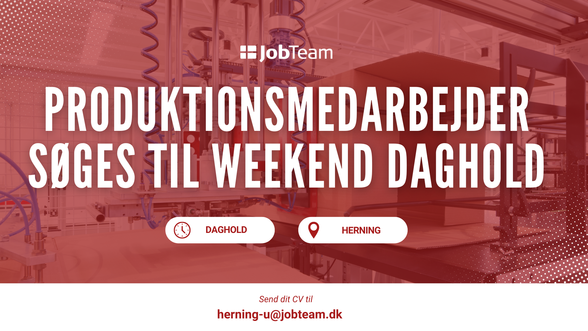 Vi søger en engageret medarbejder til weekendens daghold, som kan betjene vores emballeringsmaskine. Du vil spille en central rolle i at sikre, at vores produkter bliver pakket korrekt, mærket præcist og klar til levering. Stillingen kræver ansvarsfølelse, præcision og lyst til at arbejde i et dynamisk miljø.