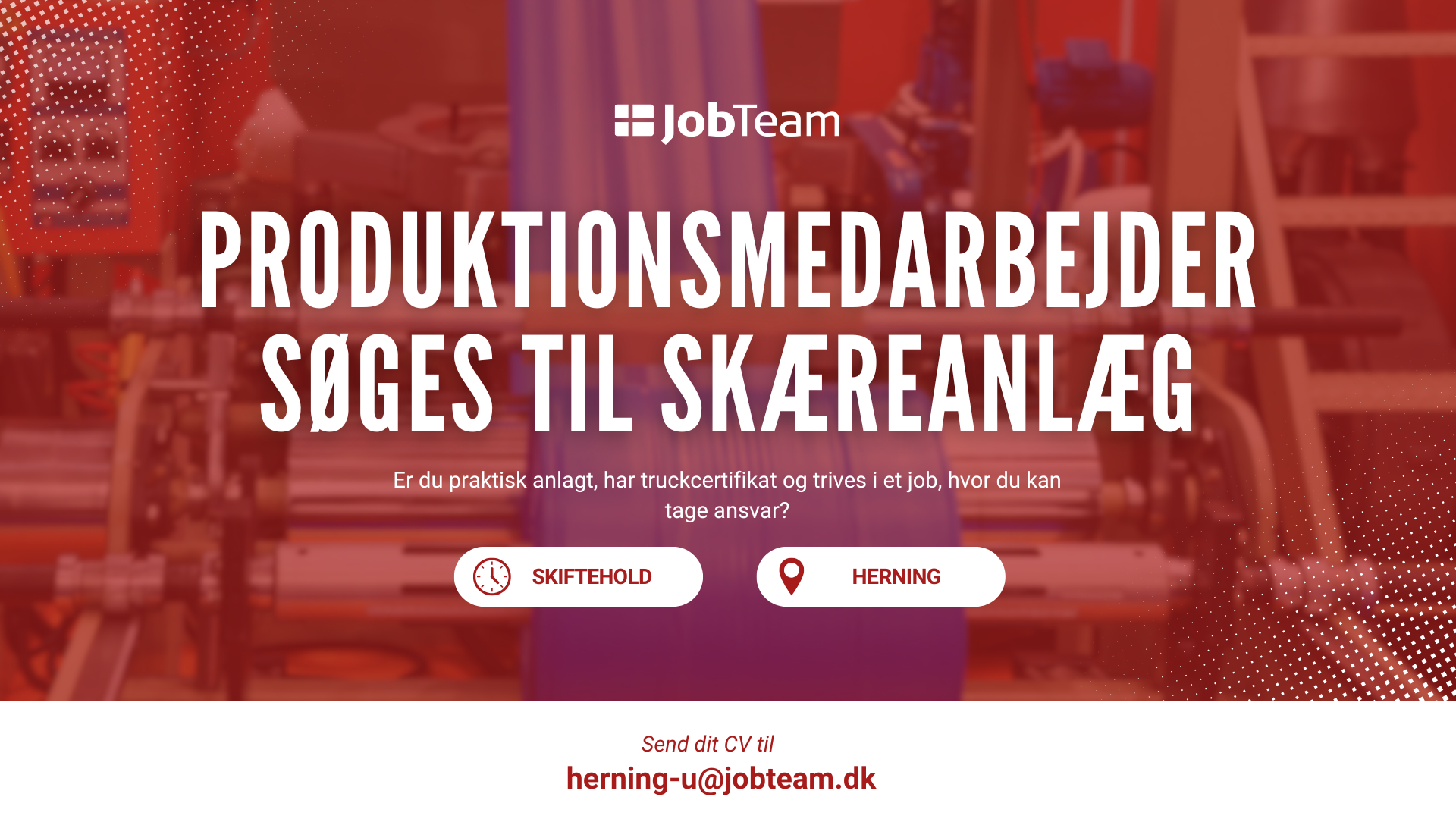Lyder dette som noget for dig? Så send dit CV til herning-u@jobteam.dk allerede i dag - mrk. "KKR-U46-QQQ1".
