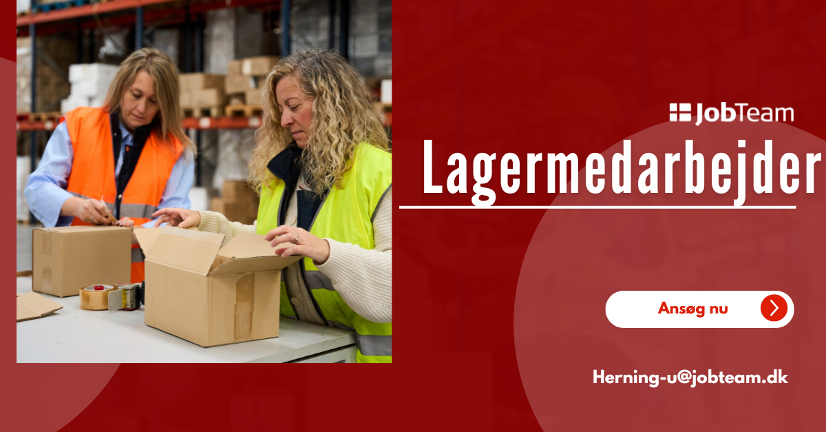 Vi søger 1-2 fuldtidsmedarbejdere til lagerarbejde hos en virksomhed, der arbejder med tøj og tekstiler. Du bliver en del af et lille team med faste arbejdstider, ordnede forhold og en hverdag med fart på. Erfaring fra lager er en fordel, men det vigtigste er din arbejdsindsats og indstilling.