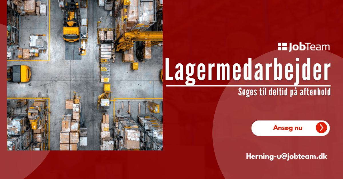 Lyder dette som noget for dig? Så send dit CV til herning-u@jobteam.dk allerede i dag - mrk. "Lager_deltid"