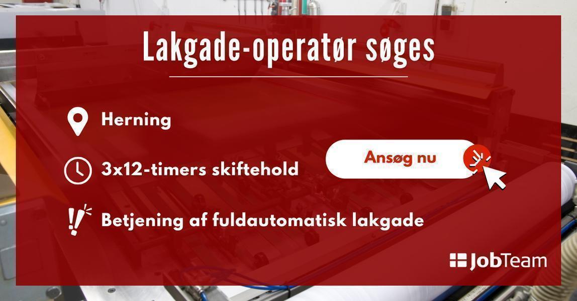 Lakgade-operatør søges til 3x12-timers skiftehold