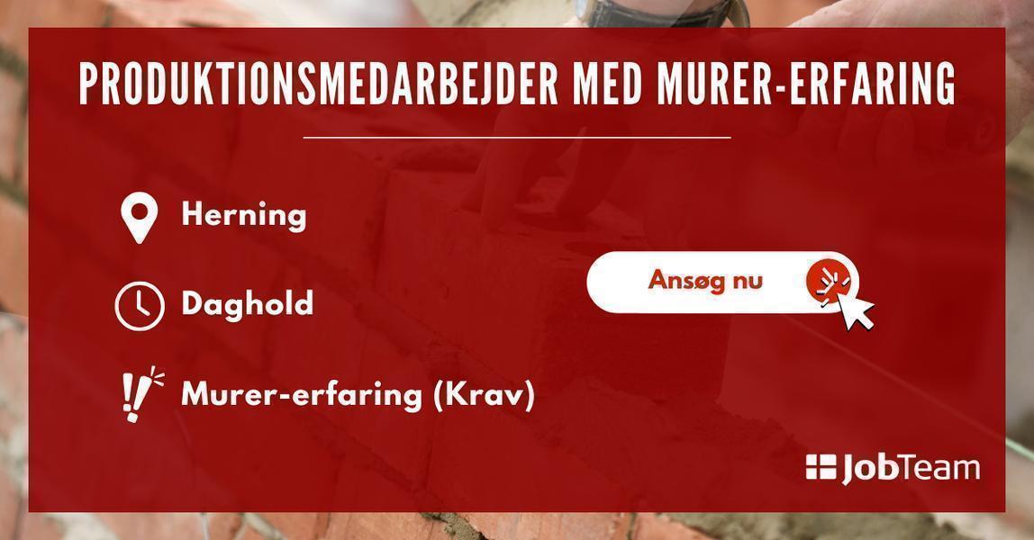 Lyder dette som noget for dig? Så send dit CV til herning-u@jobteam.dk allerede i dag - mrk. "Murer_HE".