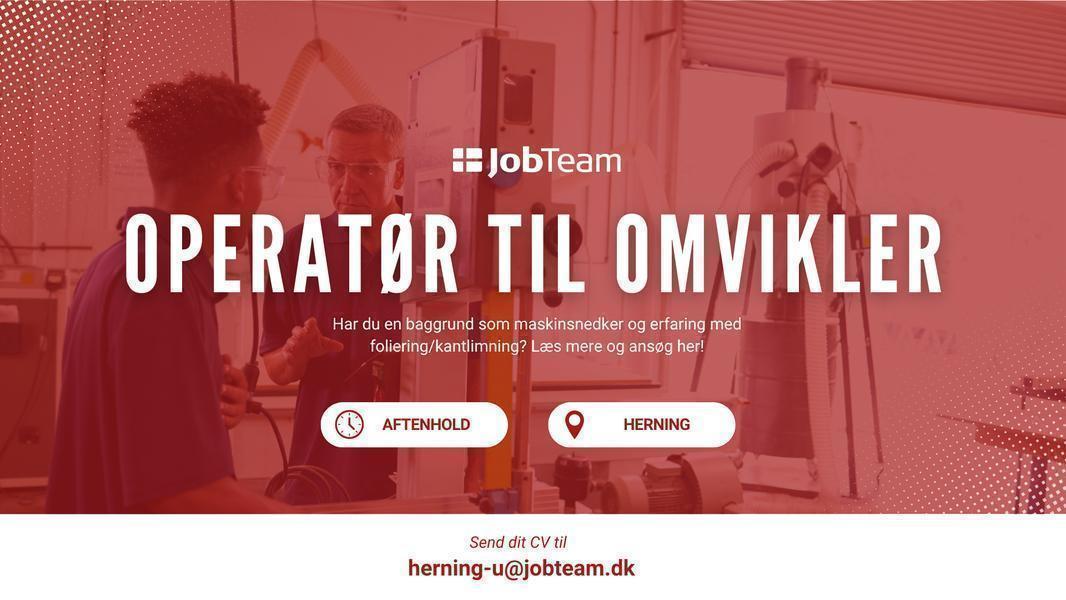 Hvis du er den montagemedarbejder vi går og søger, så send dit CV til herning-u@jobteam.dk og mrk. "Omvikler_HE".