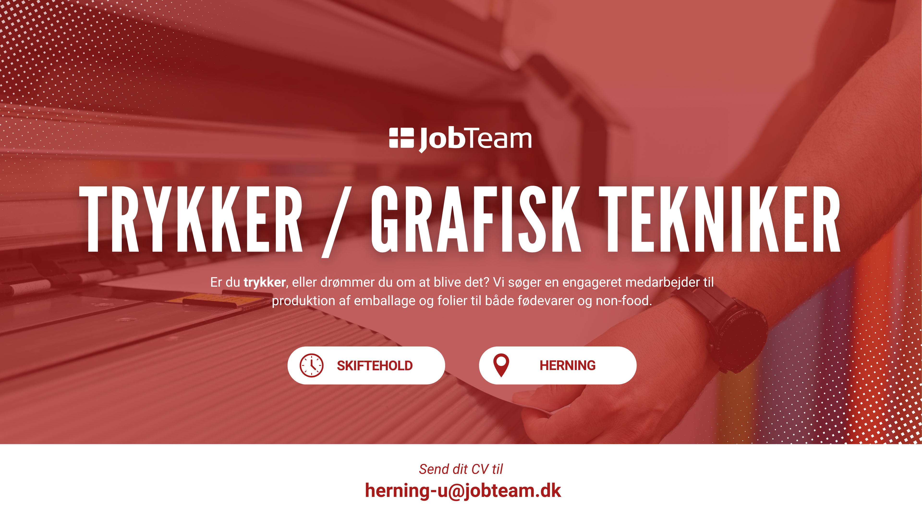 Lyder dette som noget for dig? Send dit CV og en ansøgning til herning-u@jobteam.dk, mrk. "Trykkeri_HE"