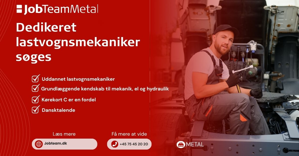 Kontakt os på mail: Aarhus-U@jobteam.dk, mærket med "Lastvognsmekaniker".