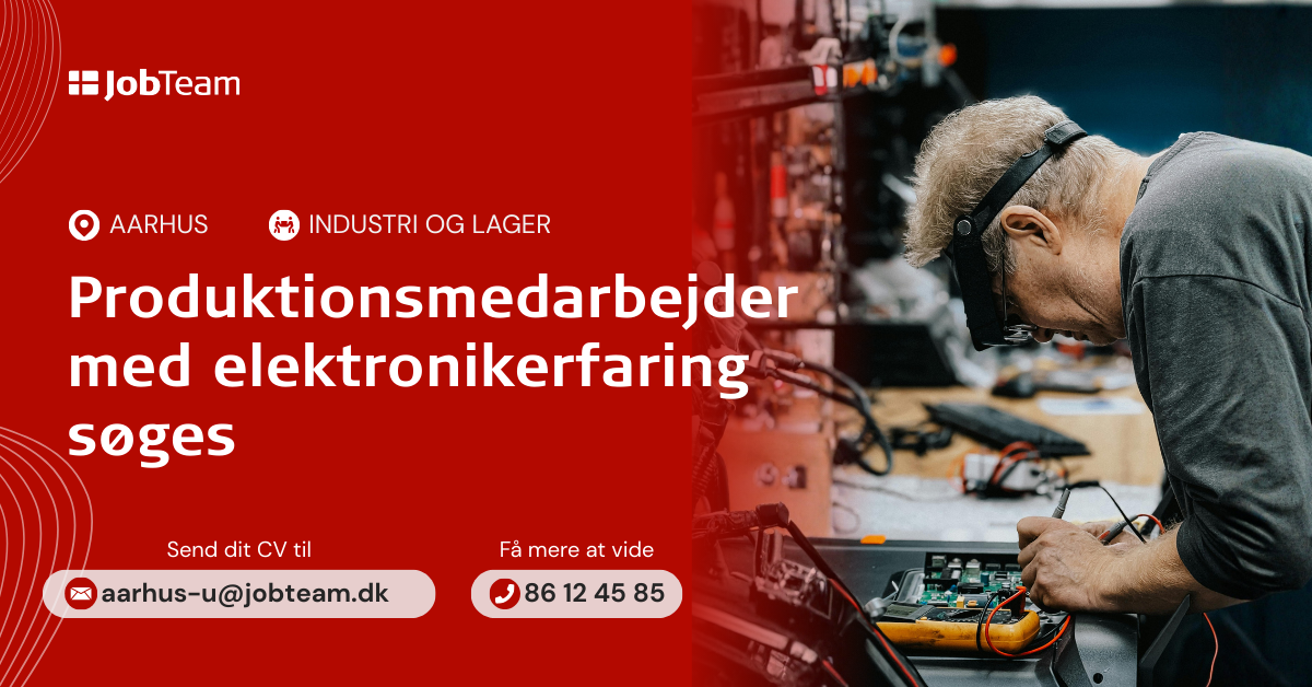 Lyder dette som noget for dig, så send dit CV til Aarhus-U@jobteam.dk og skriv "Produktion elektronik"