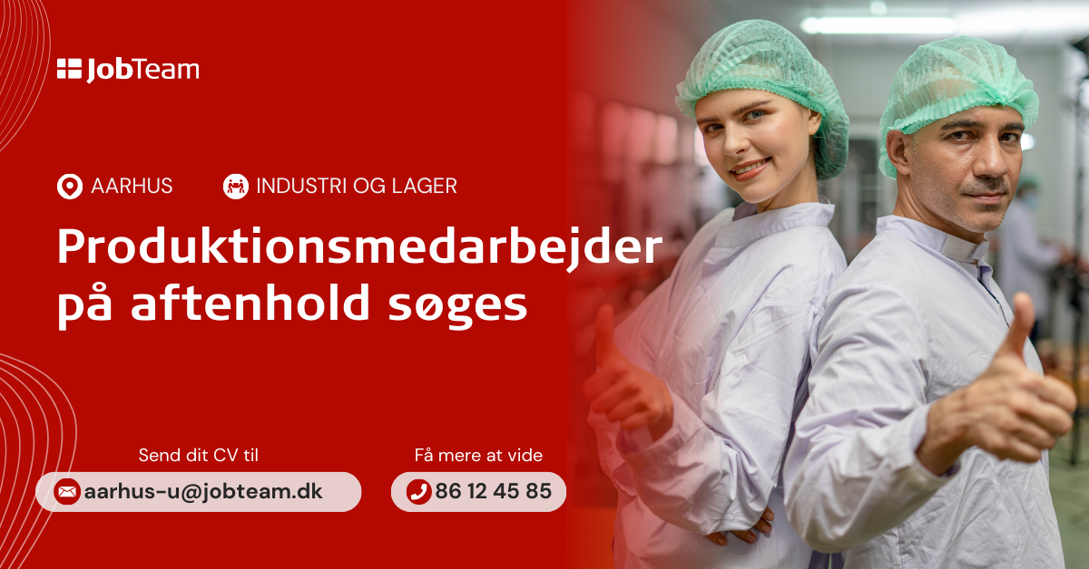 Send din ansøgning og CV til Aarhus-U@jobteam.dk. Vi glæder os til at høre fra dig !