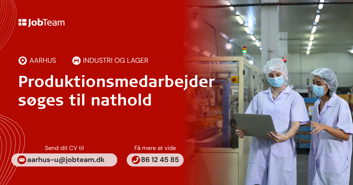 Vi søger en stabil og engageret produktionsmedarbejder til nathold hos vores kunde i Århus. Virksomheden har mange års erfaring inden for fisk og skaldyr og producerer bl.a. fiskefars og fiskefrikadeller til supermarkeder, plejehjem, kantiner mv.