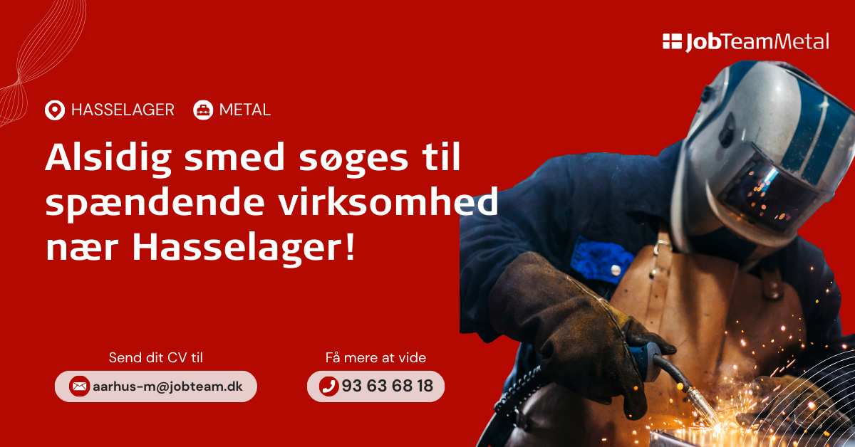 Så kontakt os på mail: Aarhus-U@jobteam.dk mærket "Smed Hasselager"