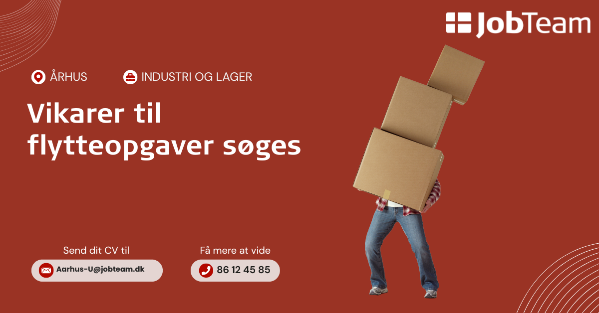 Lyder dette som noget for dig, så send dit CV til Aarhus-U@jobteam.dk og skriv "Flyttefirma Århus" i emnefeltet.