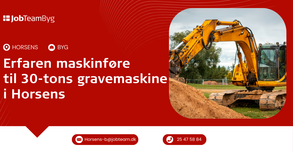 I Horsens søges en dygtig maskinfører til entreprenørarbejde. Du skal kunne betjene en 30 tons maskine med GPS og rotortilt og arbejde selvstændigt med anlægsopgaver.