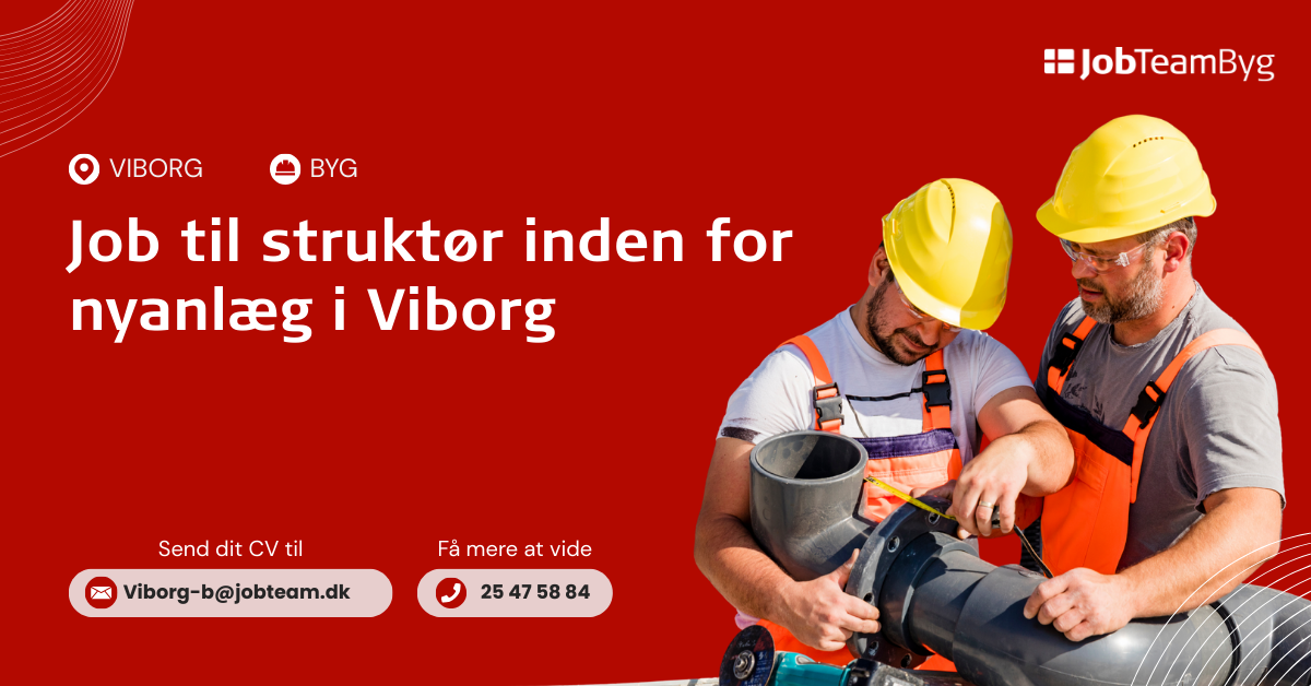Er dette noget for dig? Send din ansøgning til Jonas Foldager på viborg-b@jobteam.dk eller ring til os på 25475884 for at høre mere om stillingen.
