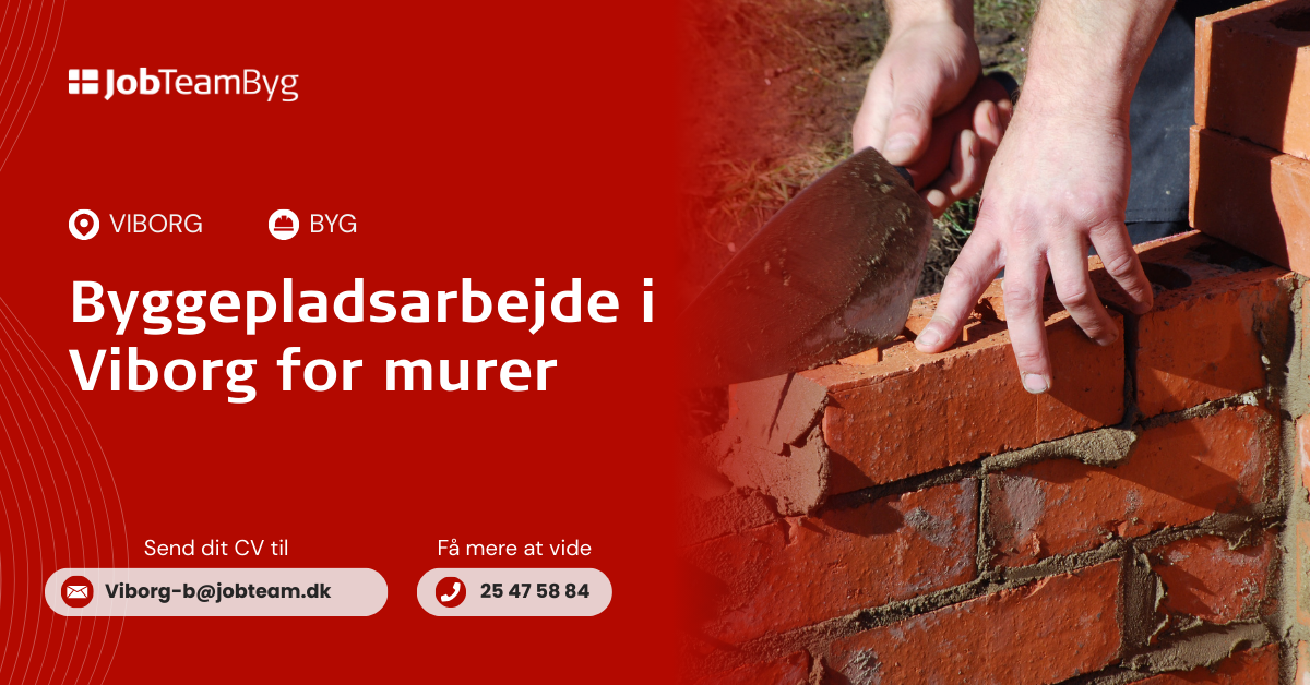 I Viborg søger vi en projektmurer til flere spændende nybyggerier. Her bliver du en vigtig del af murerteamet og får ansvaret for at sikre professionelle resultater.