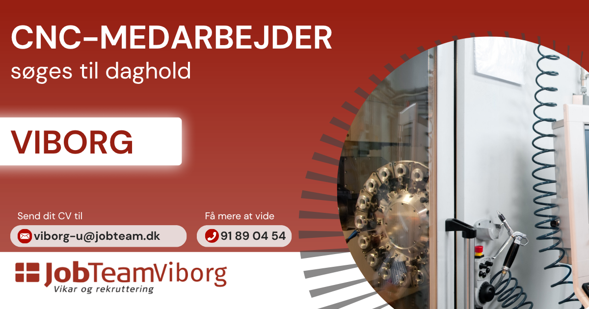 Vi søger en erfaren CNC‑medarbejder til en mindre, specialiseret metalvirksomhed ved Viborg, hvor kvalitet, faglighed og ansvarlighed er i centrum.