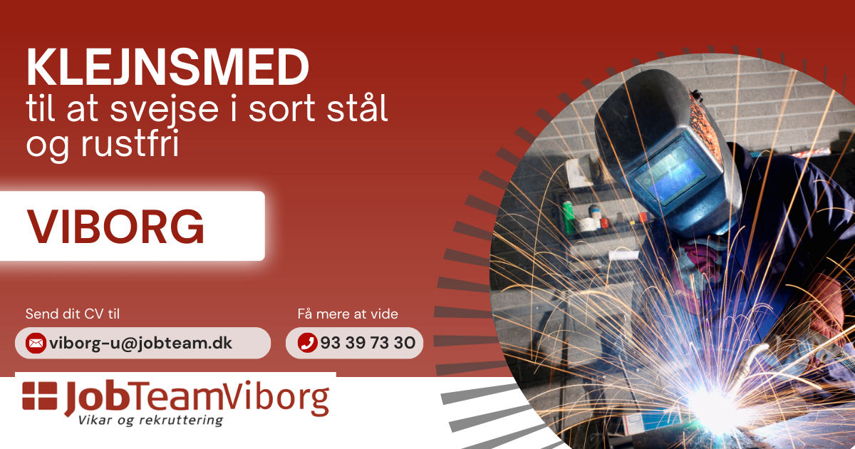 Send dit CV til os på mail: viborg-u@jobteam.dk. Skriv KLEJNSMED i emnefeltet