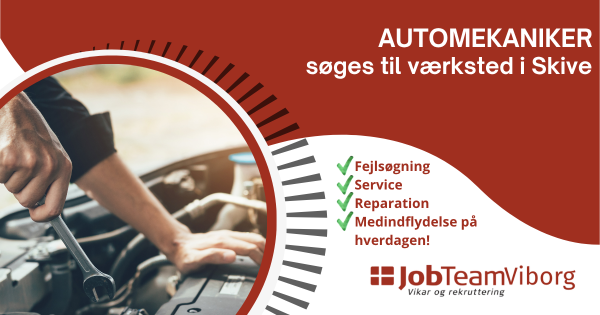 Til en virksomhed i Skive søger vi en uddannet automekaniker til service og reparation af person- og varevogne. Virksomheden arbejder med moderne udstyr og prioriterer både kvalitet og de bedste løsninger, så kunderne kan komme videre. Du bliver en del af et stabilt team, og får mulighed for faglig udvikling gennem varierende opgaver, ligesom du får reel indflydelse på din arbejdsdag.