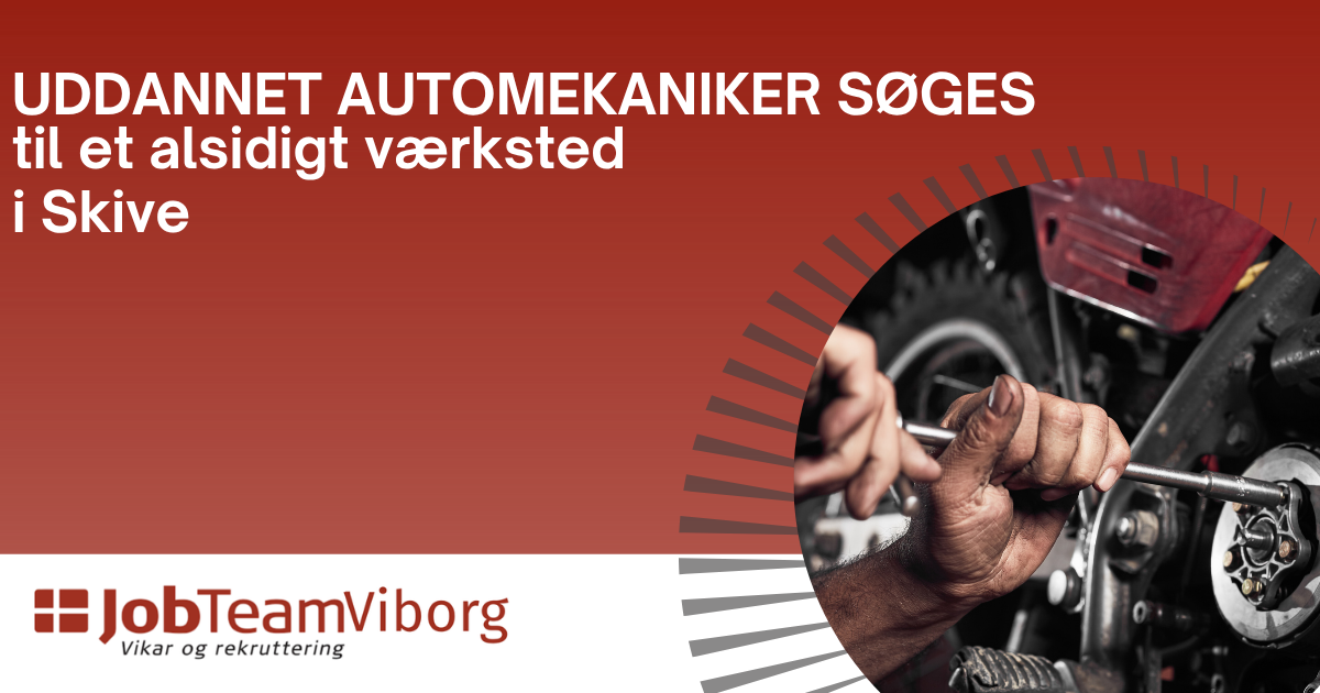 Til et værksted i Skive søger vi en uddannet automekaniker til service og reparation af person- og varevogne. Virksomheden arbejder med moderne udstyr og prioriterer både kvalitet og de bedste løsninger, så kunderne kan komme godt videre. Du bliver en del af et stabilt team, og får rig mulighed for faglig udvikling gennem varierende opgaver, ligesom du får reel indflydelse på din arbejdsdag.