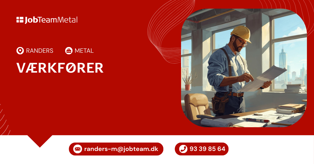 På vegne af vores samarbejdspartner søger vi en engageret og struktureret værkfører til en spændende og veldrevet virksomhed nær Randers. Virksomheden oplever vækst og har brug for en stærk profil, der kan sikre overblik, fremdrift og høj kvalitet i produktionen.