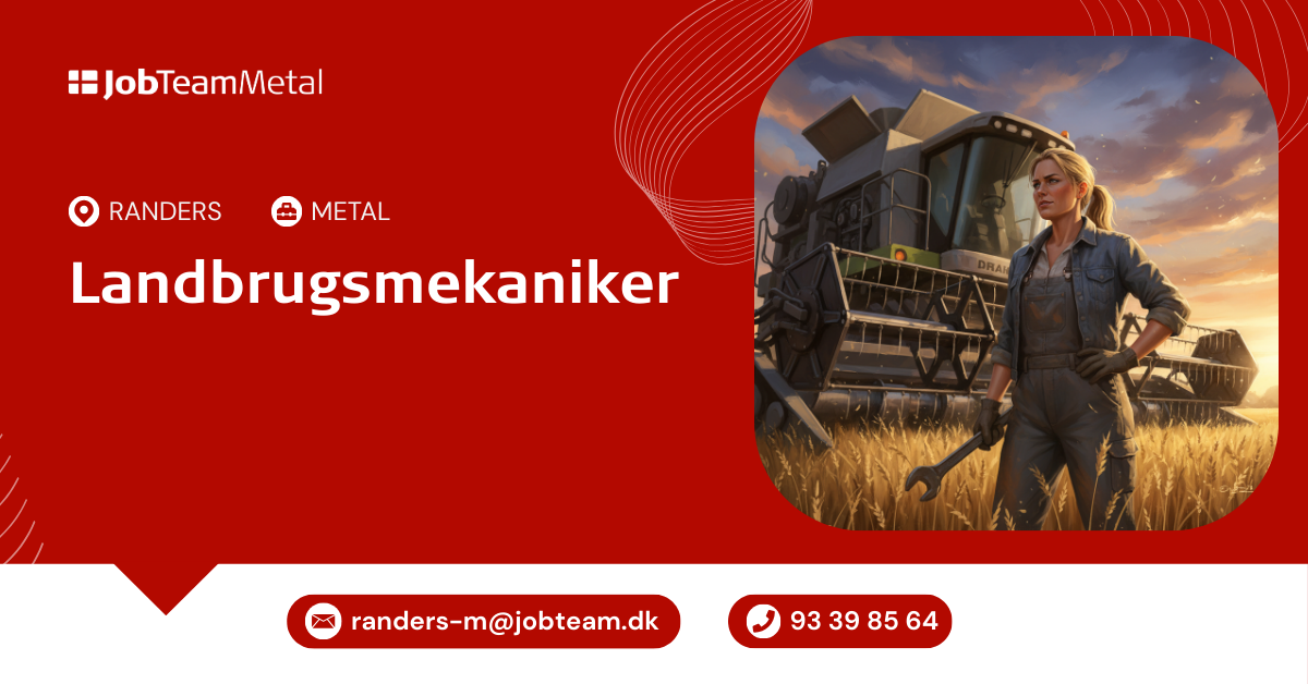 Kontakt os på mail: randers-m@jobteam.dk mærket med "Landbrugsmaskinmekaniker".