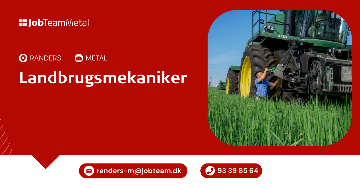 Kontakt os på mail: randers-m@jobteam.dk mærket med "Landbrugsmaskinmekaniker".