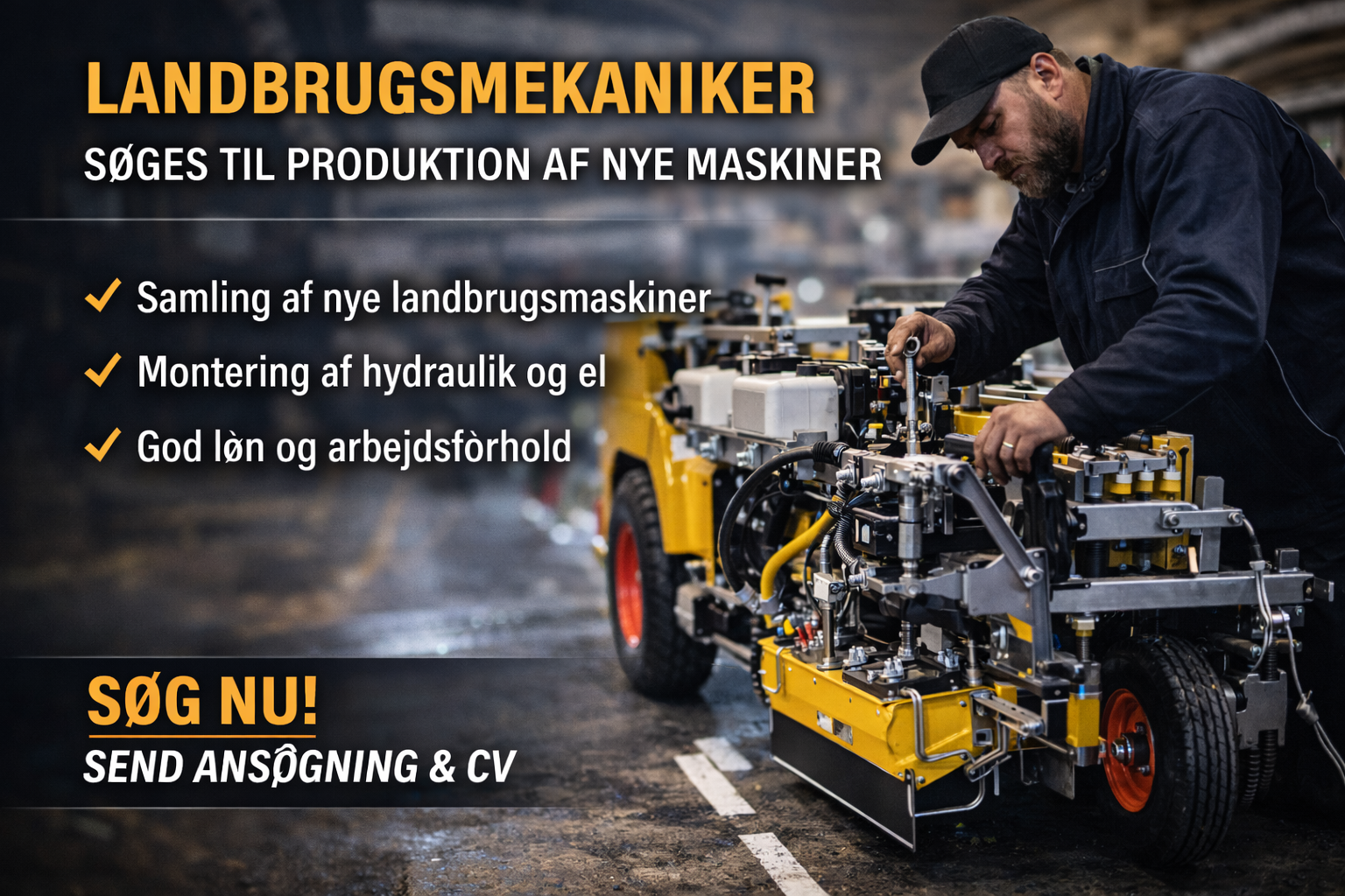 Landbrugsmekaniker søges til produktion – Randers Vi søger en dygtig og struktureret landbrugsmekaniker til montage og produktion af nye maskiner hos en solid virksomhed i Randers.