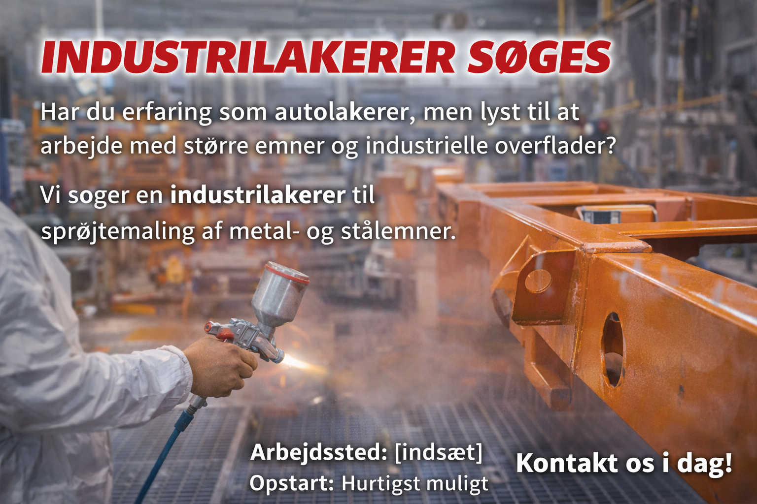 Har du erfaring som autolakerer og lyst til at arbejde med større emner og industrielle overflader? Så har vi jobbet til dig.