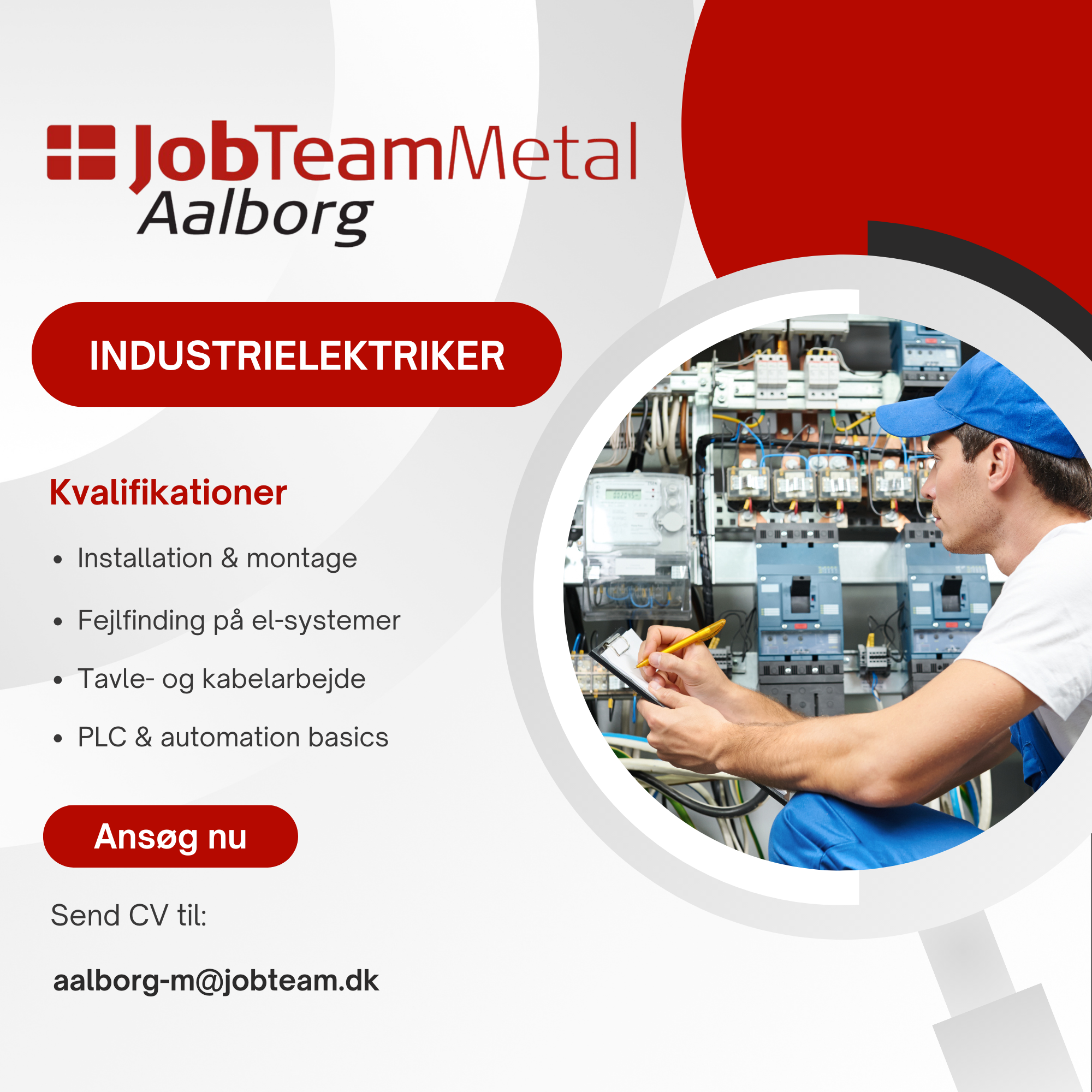 Eller på mail: tha@jobteam.dk, mærket med "Industrielektriker".