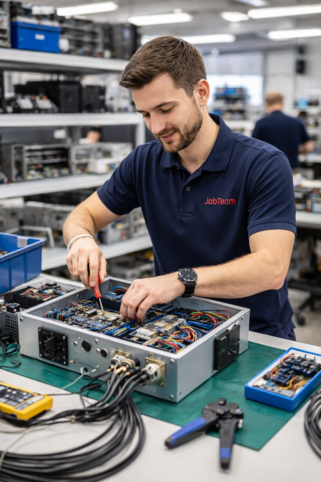 Dine primære opgaver vil være samling, montering og færdiggørelse af elektroniske produkter (box-building), samt forskellige supportopgaver i produktionen.
