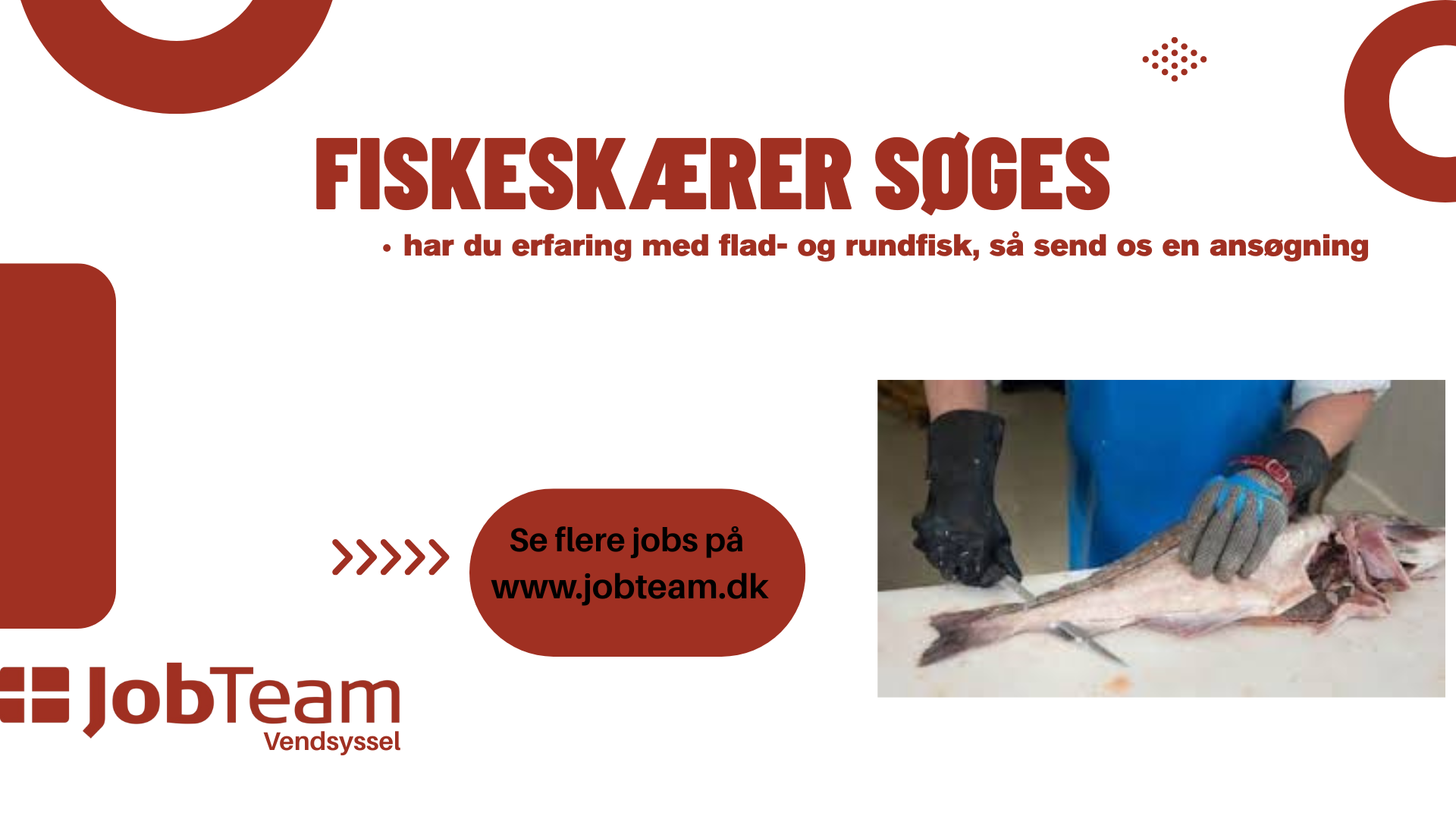 Vi søger en frisk og engageret fiskeskærer til daghold nær Hanstholm. Arbejdsopgaverne kan være af varierende form, men det bliver primært præcis skæring og filetering af flad- og rundfisk, og at sikre at produktionsprocesserne og driften kører effektivt og fejlfrit. Der er tale om en fast stilling