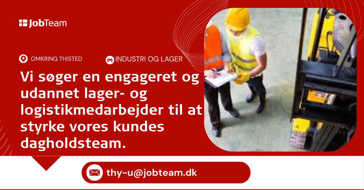 Så har du udannet inden for lager og logistik, truckcertifikat og er klar på at tage fat, så send dit CV til broenderslev-u@jobteam.dk