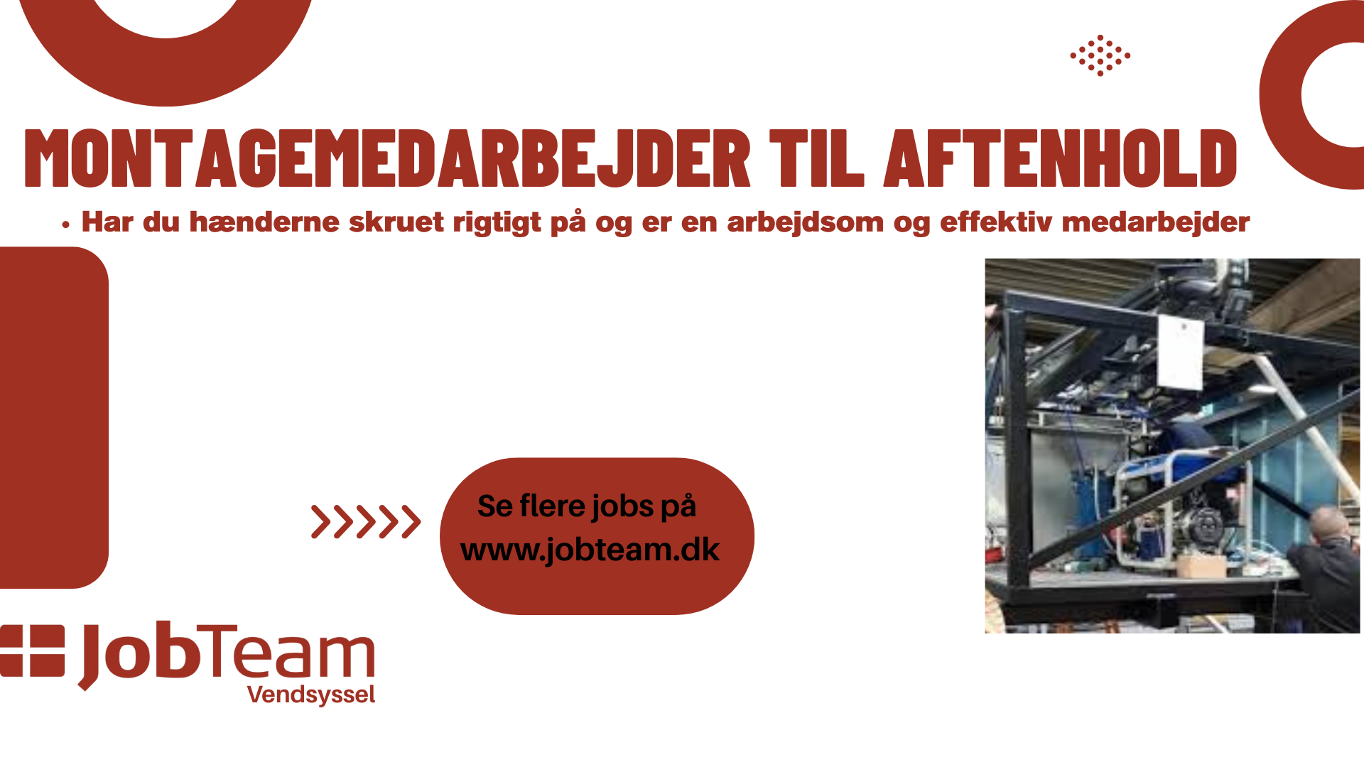 Du kan søge dette job ved at sende dit CV til broenderslev-u@jobteam.dk og skrive "Montage aften Hjørring" i emnefeltet.
