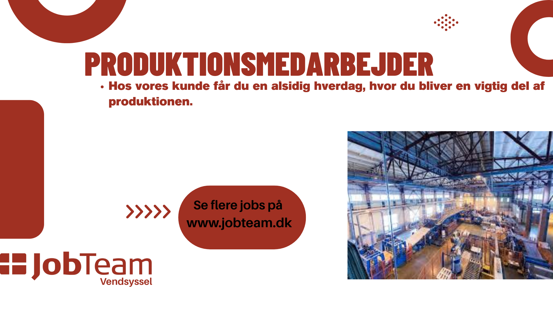 Stillingen ønskes besat hurtigst muligt og vi holder derfor løbende samtaler. Så lyder dette som noget for dig, så send dit CV til broenderslev-u@jobteam.dk og skriv "Produktionsmedarbejder dag Thisted".