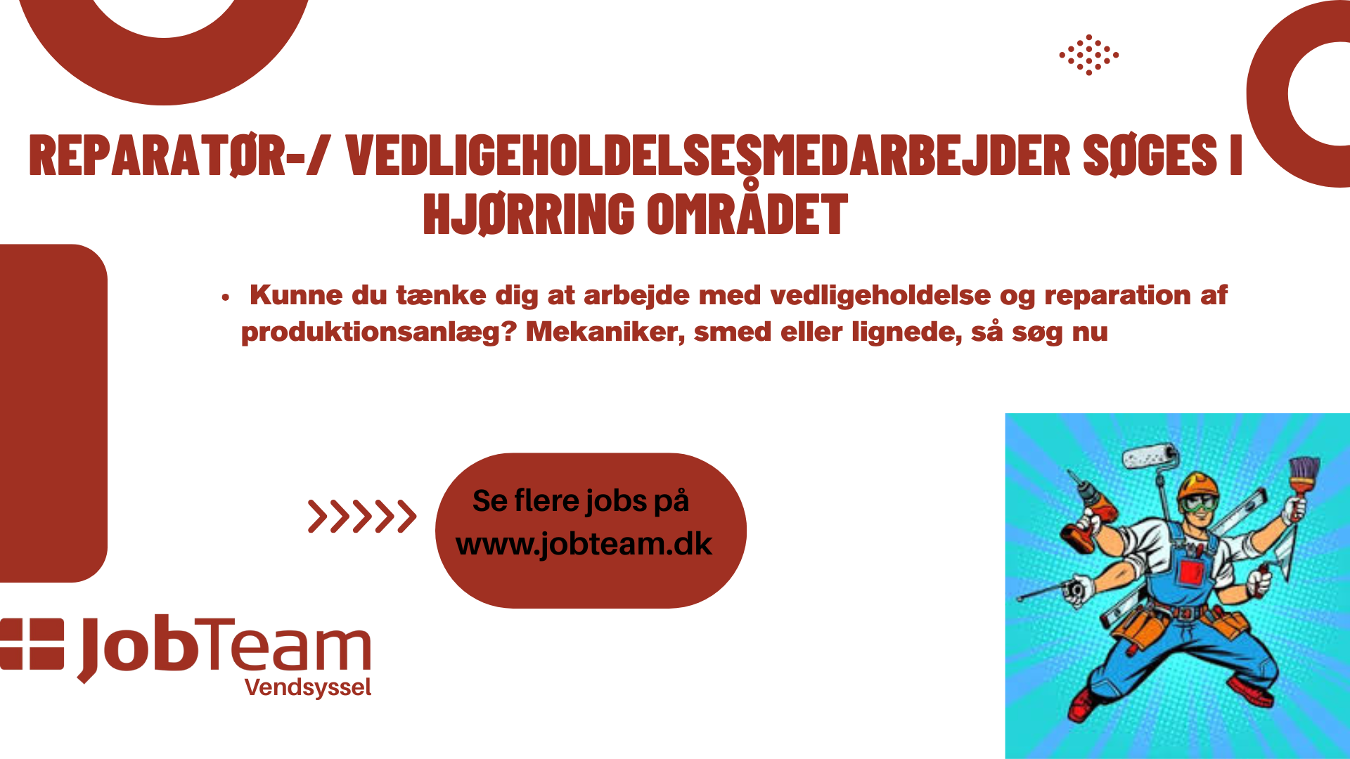 Reparatør- /vedligeholdelsesmedarbejder søges i Hjørring området